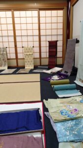 10月19日(日)、工房愛莉紗ミニ個展を開催しました。弓弦羽神社にて。 すっかり秋めいて参りました。訪問着を中心に西陣袋帯、小物等展示しました。また、色無地のご注文もお受けしております。一度お立ち寄りくださいませ。